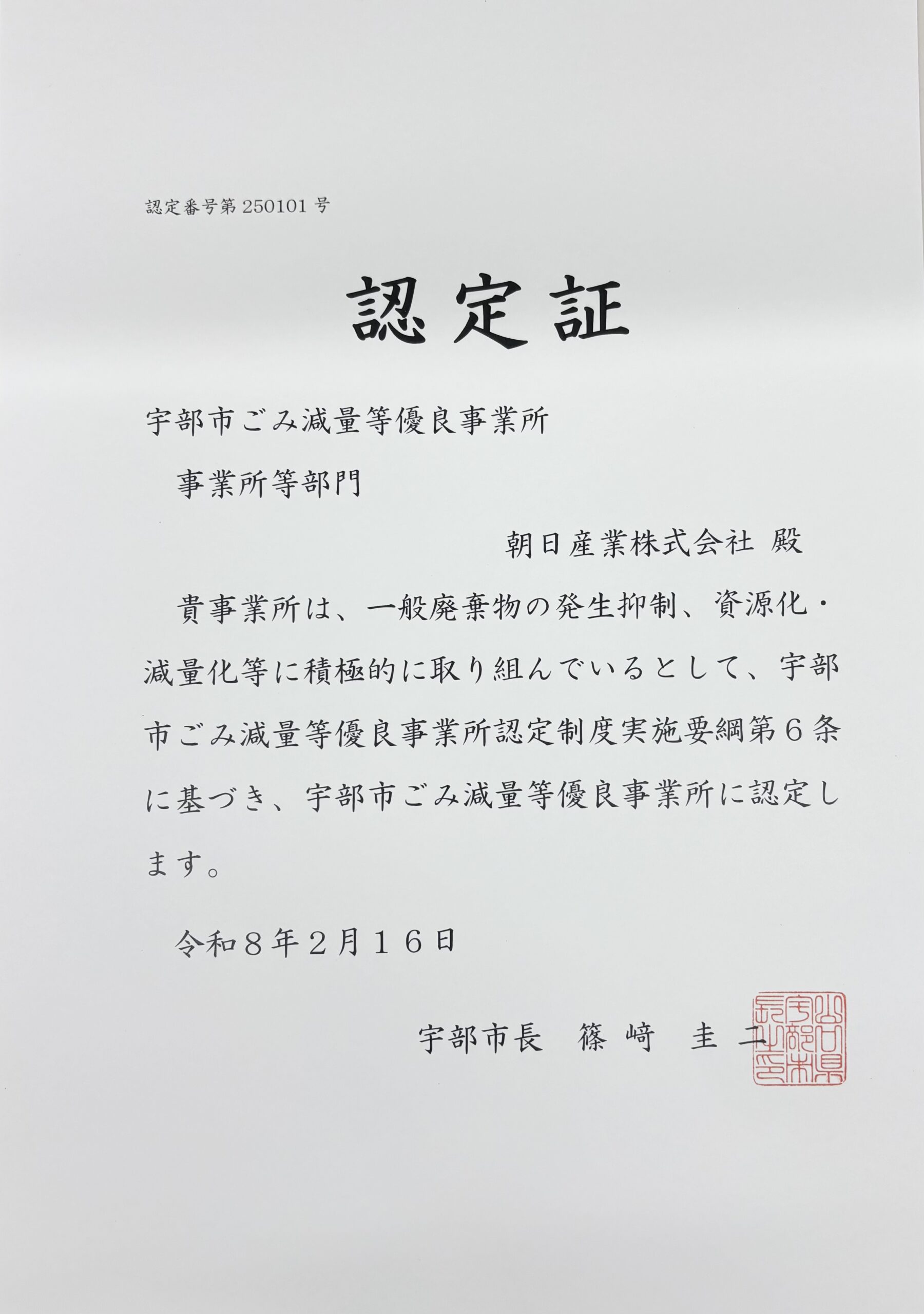 「ごみ減量等優良事業所認定制度」に申請し、
